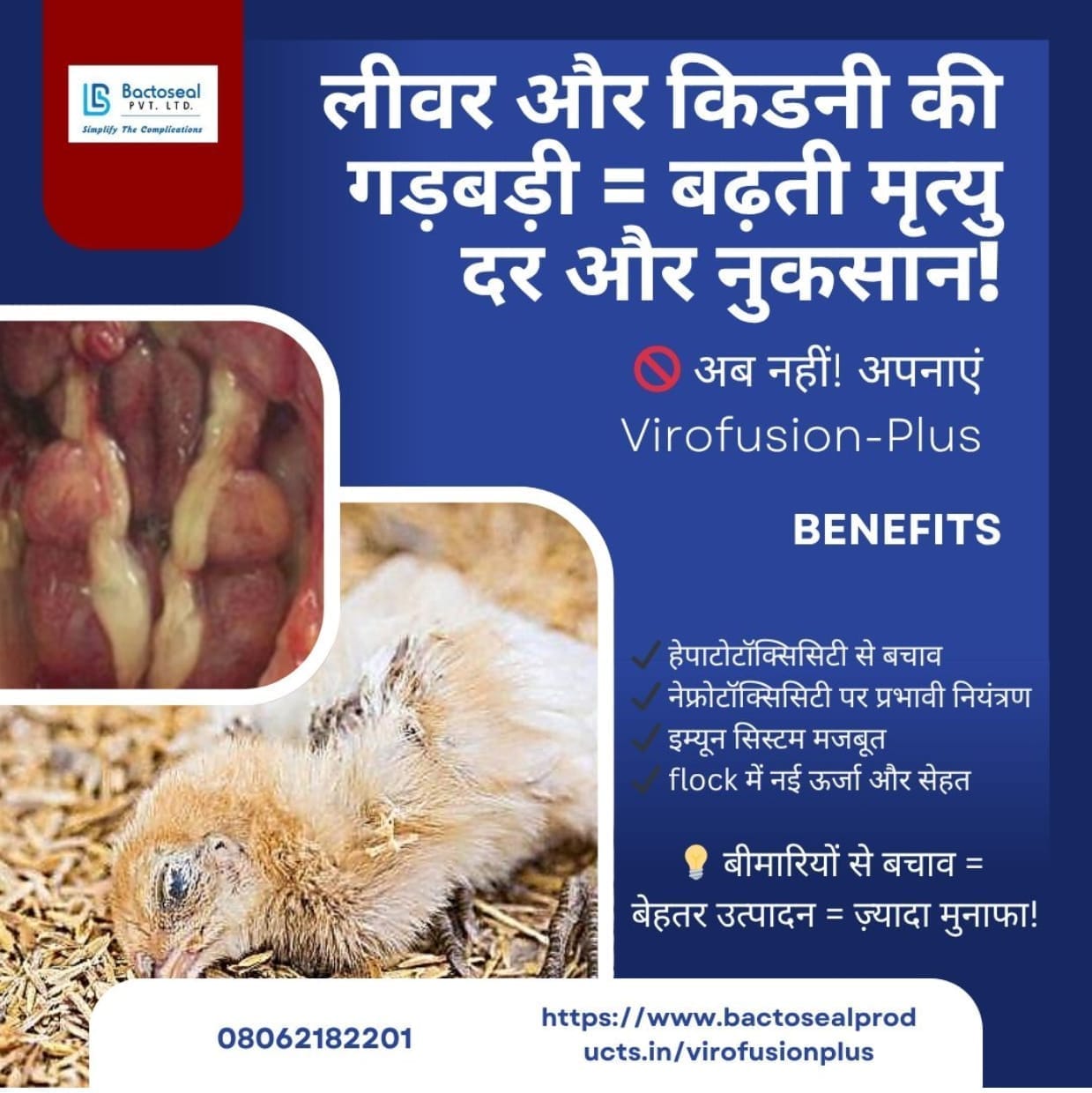 पोस्ट-वायरल संक्रमित मुर्गी, लेयर और ब्रीडर्स के उत्पादन में सुधार होता है, जो उत्पादन प्रतिशत में श्रेष्ठ प्रदर्शन के साथ मृत्यु में कमी के साथ अंतिम परिणाम के लिए लेकर जाता है